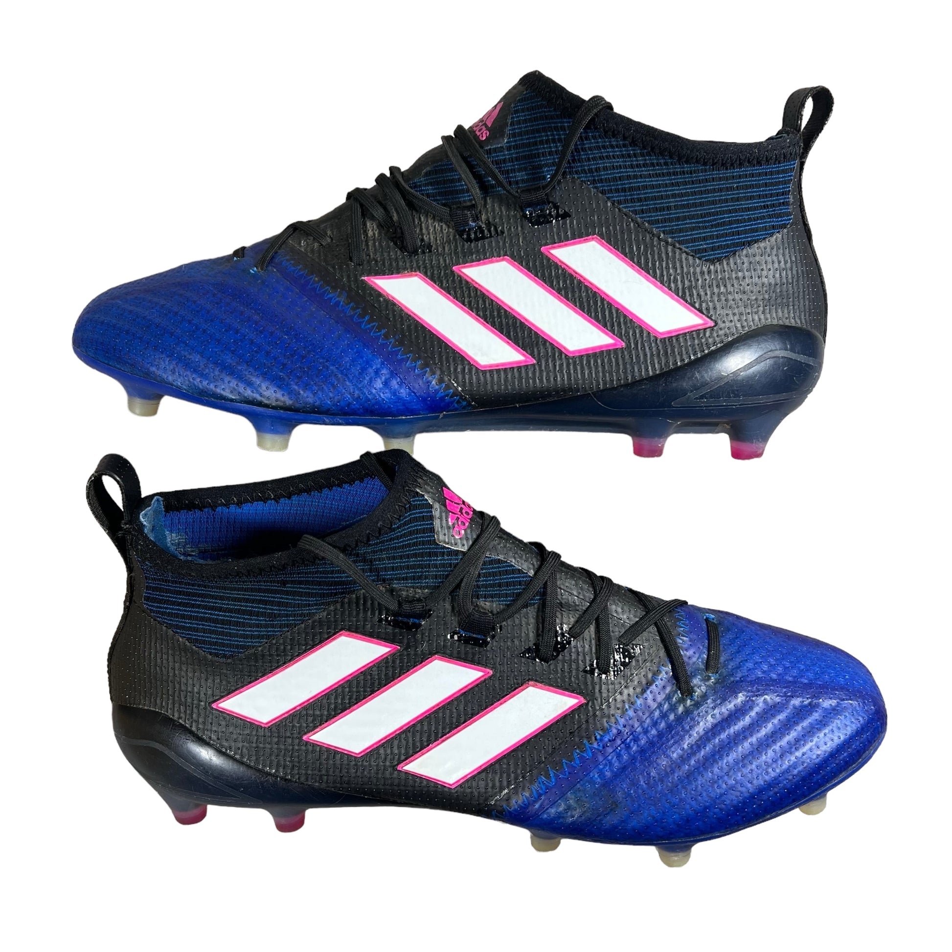 Step onto the field with confidence in the Adidas ACE 17.1 Primeknit FG soccer cleats, meticulously designed to enhance your performance. Crafted with precision using Primeknit material, these cleats wrap your feet in a supportive, yet flexible, fit, allowing for seamless movement and unparalleled comfort throughout the match.The innovative Primeknit upper construction ensures a snug and adaptive feel, molding to the contours of your foot for a customized fit that enhances your touch and control on the ball. Whether you're making quick cuts or delivering pinpoint passes, the ACE 17.1 Primeknit FG empowers you to dictate the pace of the game with precision and finesse.Equipped with Adidas' revolutionary Total Control stud configuration, these cleats deliver unmatched traction and stability on firm ground surfaces, allowing you to accelerate, decelerate, and change direction with confidence. The strategically placed studs provide optimal grip, ensuring you stay one step ahead of the competition, while the lightweight SPRINTFRAME outsole offers stability and support during explosive movements.Engineered to meet the demands of elite players, the Adidas ACE 17.1 Primeknit FG combines cutting-edge technology with superior craftsmanship, making it the ultimate choice for those who strive for greatness on the pitch. Dominate every aspect of the game and unleash your full potential with the Adidas ACE 17.1 Primeknit FG soccer cleats.