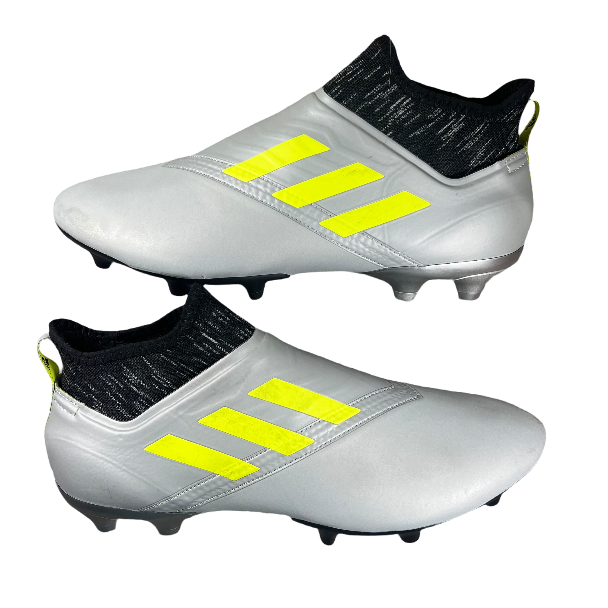 However, the Glitch “Exhibit Skin” truly shines under the lights. Initially appearing as a dull white and off-grey, the base material illuminates when exposed to light, revealing graphic details around the vamp. This effect, which mirrors the design of the inner shoe, creates an “X-ray” illusion. You can showcase this effect on both pitch and turf, as options for both are available.